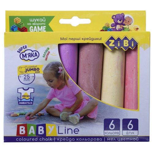 крейда кольорова Zibi Jumbo для асфальту 6шт. 25х100мм. в карт.уп. ZB.6710-99 (56)