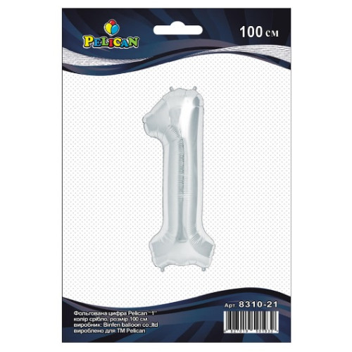 кулька-цифра фольгована Pelican 100см. срібло "1" 831021 (5/50/500)