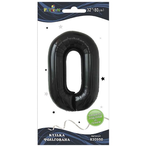 кулька-цифра фольгована Pelican 80см. чорна "0" 830950 (5/50)