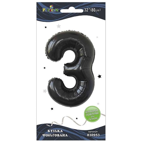 кулька-цифра фольгована Pelican 80см. чорна "3" 830953 (5/50)