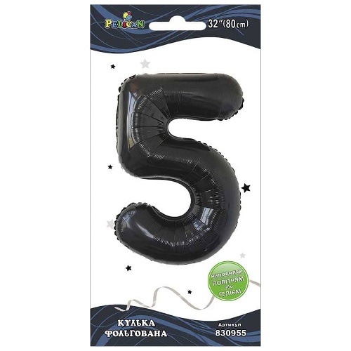 кулька-цифра фольгована Pelican 80см. чорна "5" 830955 (5/50)