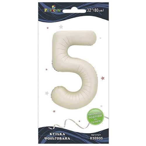 кулька-цифра фольгована Pelican 80см. молочна "5" 830905 (5/20)