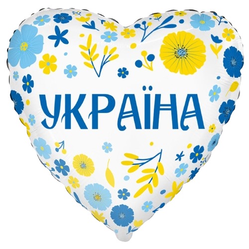 кулька фольгована серце "Україна" квіти 18"/45см. 3202-3174 (1)