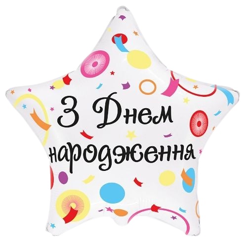 кулька фольгована зірка "З днем народження" яскравий фейєрверк 18"/45см. 3202-3156 (1)