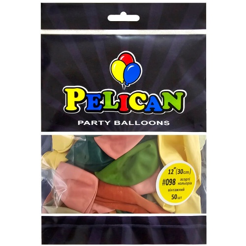 кульки повітряні Pelican 12"/30см. вінтажні асорті, ціна за уп. - 50шт. 812098