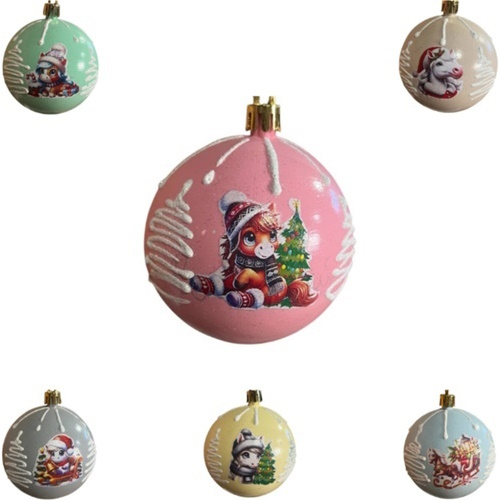 кульки ялинкові "символ року конячка наклейка нюдові" 8см. (6/192)