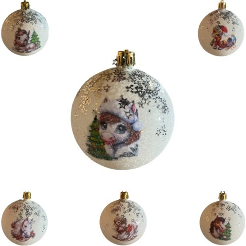 кульки ялинкові "символ року конячка наклейка + зірочки" 6см. (6/450)