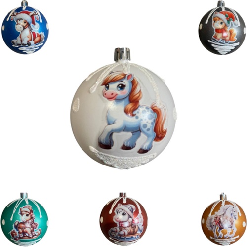 кульки ялинкові "символ року конячка наклейка" 6см. (6/450)