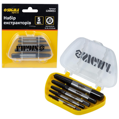 набір екстракторів для викручування зірваних болтів Сигма 5шт. d-3-18мм. 1200051