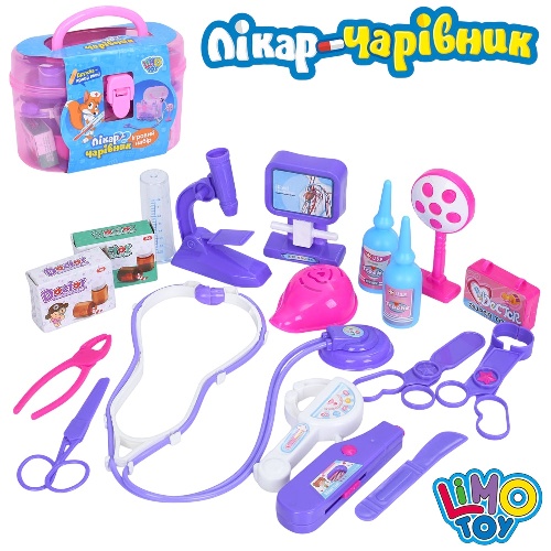 набір лікаря стетоскоп, мед. інструменти, у валізі в карт. обгортці 19,5х13х10см. 5608В (36)