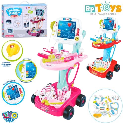 набір лікаря візок 75х33х92см., мед. інстр., звук, світло, на бат. в кор. 50х37х12см. 660-45-46 (12)