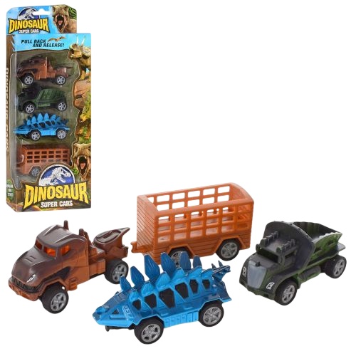 набір машинок інерц. 3шт. 8,5см., корпус-динозавр, з причепом, в кор. 12,5х32х4,5см. 757-30 (72)