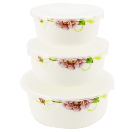 набір салатників склокерамічних 3шт. (14см./16см./19см.) з кришками Бузковий піон 6616 HDW-3B (12)
