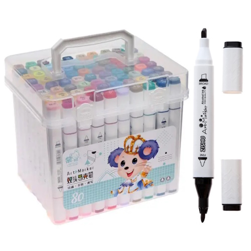 набір скетч маркерів "Mouse" 80кол., кругл./скош. накін., в пласт. кор. 222-80 (12)