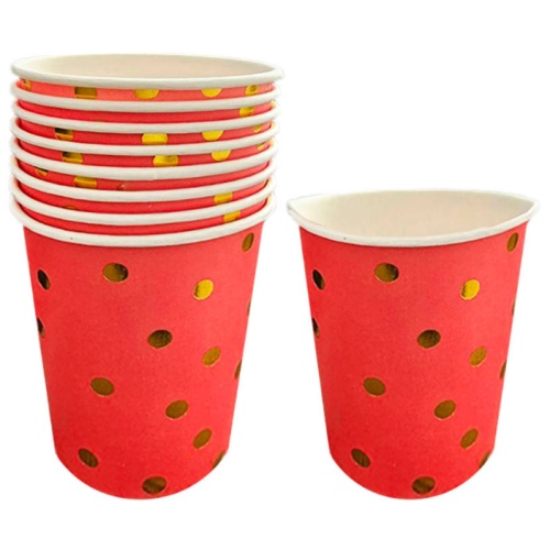 набір стаканів картонних Pelican "Червоні із золотим горошком" 10шт. 871408