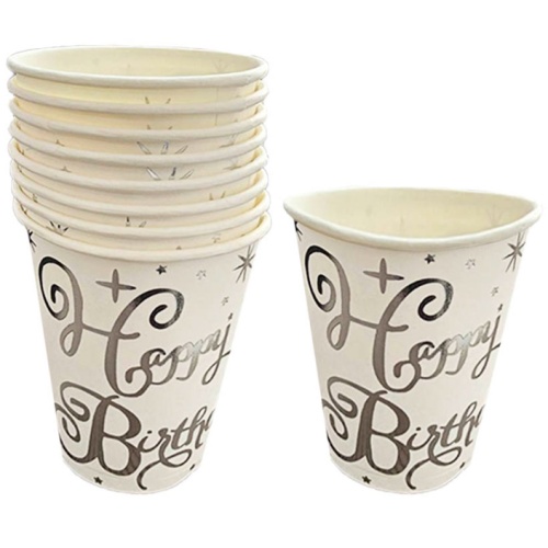набір стаканів картонних Pelican "Happy Birthday" білі зі срібними зірочками 10шт. 871426