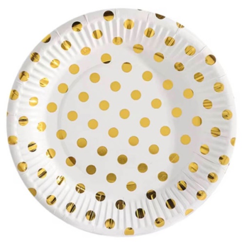набір тарілок картонних Pelican "Білі із золотим горошком" 18см. 10шт. 871601