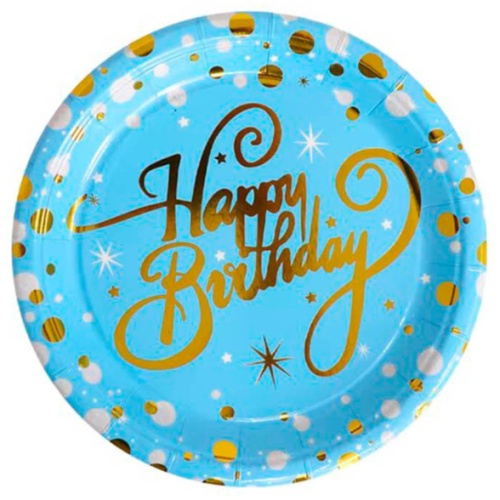 набір тарілок картонних Pelican "Happy Birthday" блакитні із золотом 18см. 10шт. 871623