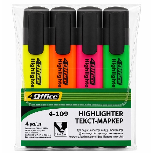 набір текст-маркерів 4Office 4кол., 1-4,5мм. 4-109/24 (60)