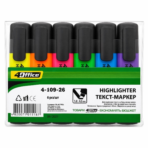 набір текст-маркерів 4Office 6кол., 1-4,5мм. 4-109/26 (40/160)