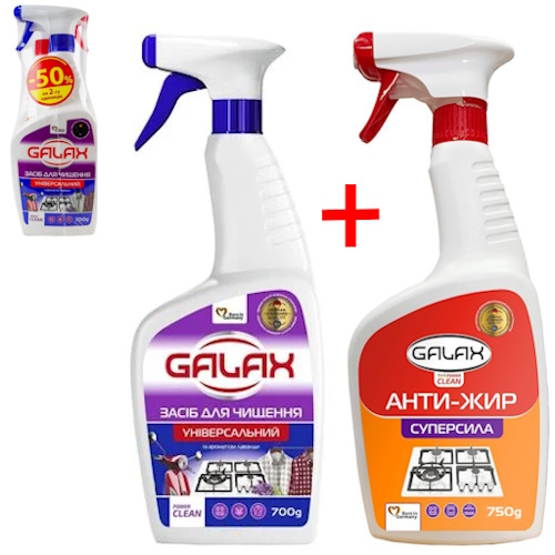 набір засіб для чищення універсальний Galax 700гр. + засіб для видалення жиру 750гр.