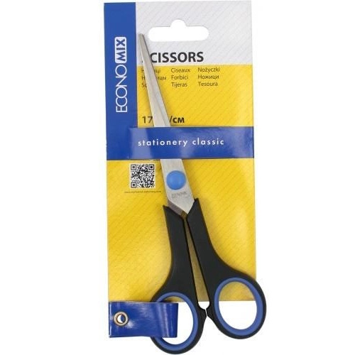 ножиці Economix E40402 17см., пласт. руч. з гумовими вставками, на бліст. (12/144)