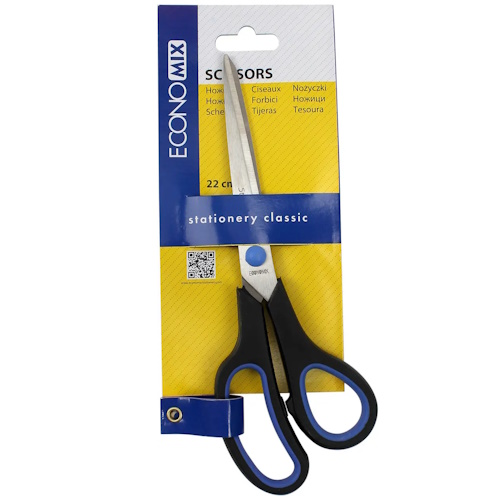 ножиці Economix E40404 22см., пласт. руч. з гумовими вставками, на бліст. (12/144)