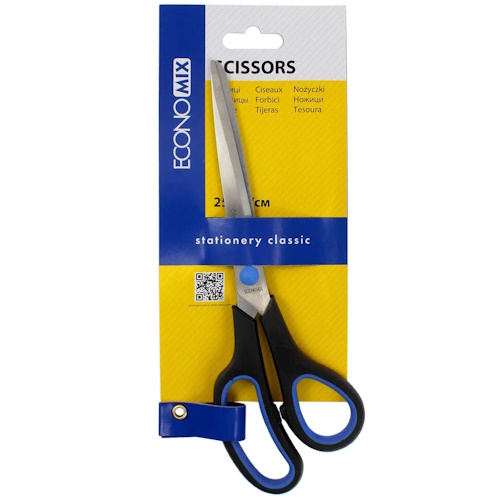 ножиці Economix E40405 25см., пласт. руч. з гумовими вставками, на бліст. (12/96)