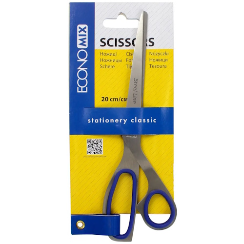 ножиці Economix E40424 20см., суцільнометалеві, ручки з гумовими вставками, на бліст. (12/144)