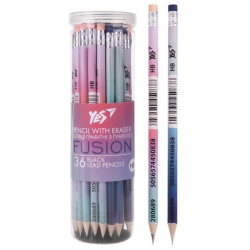олівець чорнографітний YES Fusion круглий з гумкою в пл. тубі 280689 (36/540/2160)