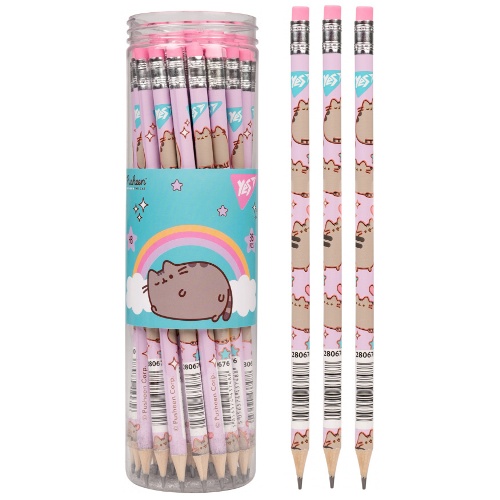 олівець чорнографітний YES Pusheen Rainbow круглий з гумкою в пл. тубі 280676 (36/540/2160)