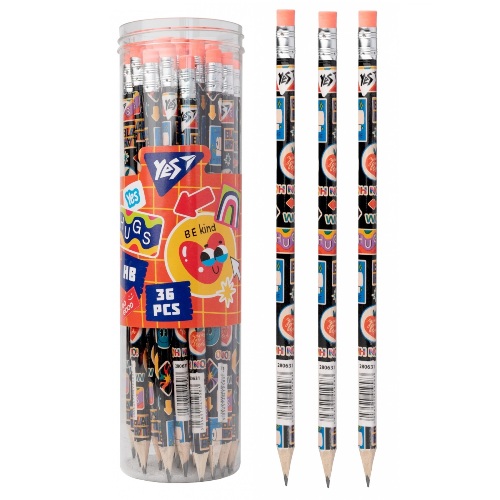 олівець чорнографітний YES Sticky Mood трикутний з гумкою в пл. тубі 280631 (36/540/2160)