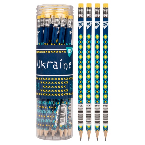 олівець чорнографітний YES Ukraine трикутний з гумкою в пл. тубі 280673 (36/540/2160)