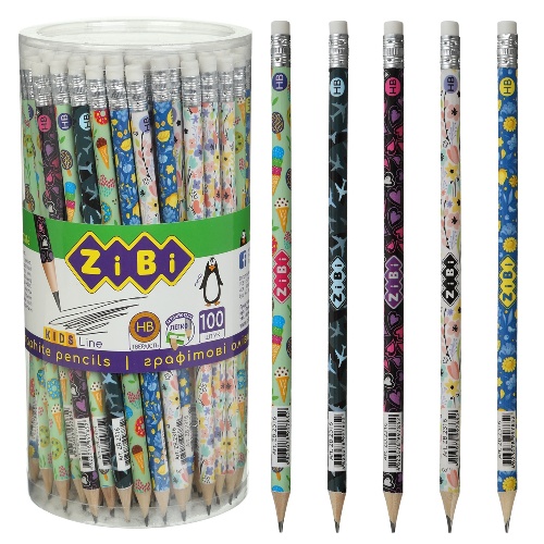олівець чорнографітний Zibi Bright, з гумкою, в тубі, НВ ZB.2316 (100/2400)
