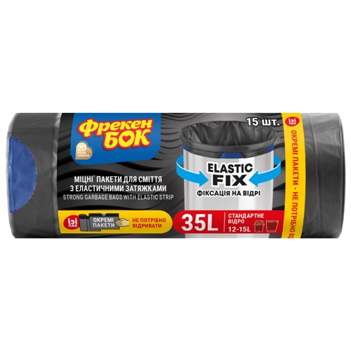 пакети для сміття Фрекен Бок 35л./15шт. 53х53см. з еластичною затяжкою LD ElasticFIX (18)