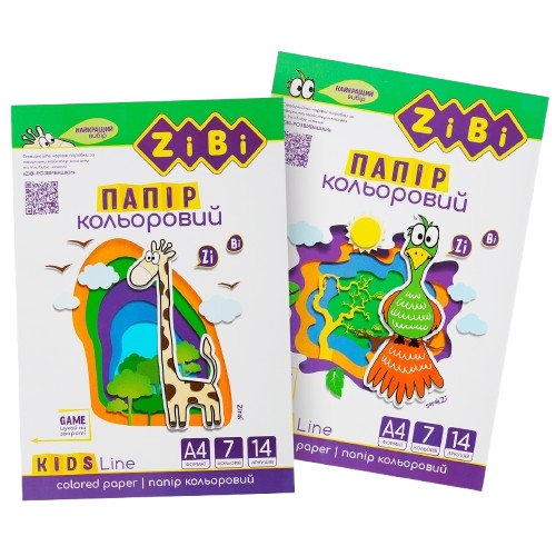 папір кольоровий Zibi Kids Line А4 14арк./7кол. "в рукаві" ZB.1901 (40)