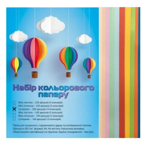 папір оф. кольор. U-Forest Mondi А4/ 80гр./250арк. Супермікс 10кол.х25арк. (10)