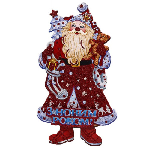 плакат новорічний 2121-1 "Дід Мороз із подарунками" 43х24см. укр. напис (10)