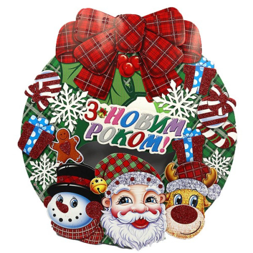 плакат новорічний 7807-3 "Вінок Дід Мороз" 39,5х39,5см. укр. напис (10)