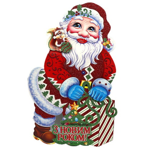 плакат новорічний 9830 "Дід Мороз із мішком" 35см. укр. напис (10)