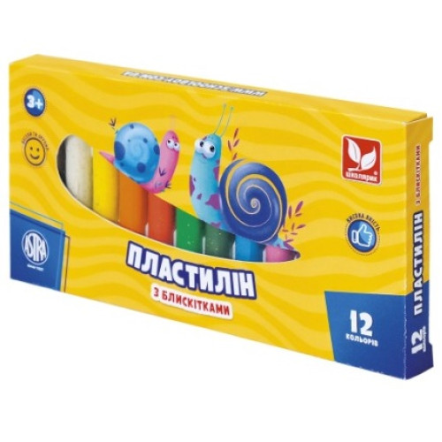 пластилін Школярик з блискітками круглий восковий 12кол./156гр. 303107001 (24)