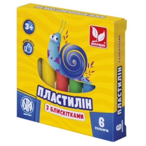 пластилін Школярик з блискітками круглий восковий 6кол./78гр. 303109001 (26)