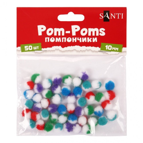 помпони Santi двокольорові, мікс 5 кольорів, d-10мм., 50шт./уп. 955447 (1/12/288)