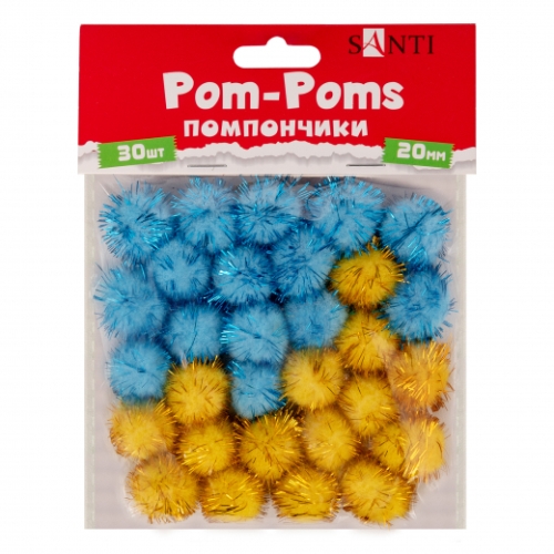 помпони Santi з люрексом (блакитний, жовтий) d-20мм. 30шт./уп. 954660