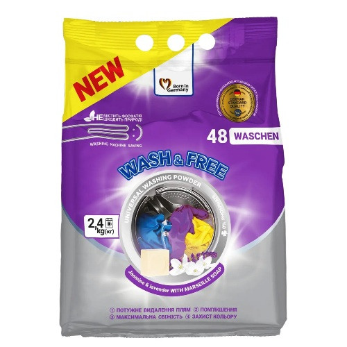 пральний порошок Wash&Free універсальний жасмин та лаванда з марсельським милом 2400гр.
