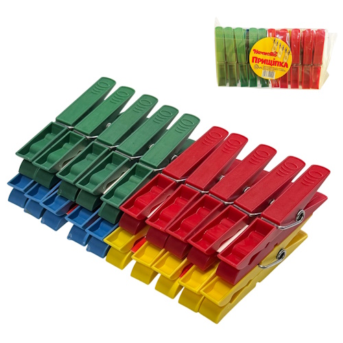 прищіпки пластмасові кольорові 7см. 20шт./уп. (100)