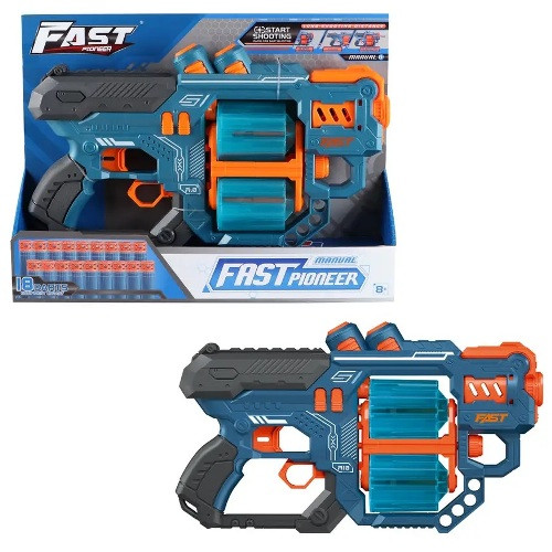 пістолет механічний 31,5х18,5см. з подвійним барабаном, 18 м`яких набоїв, в кор. 32х6,5х27см. ВН804