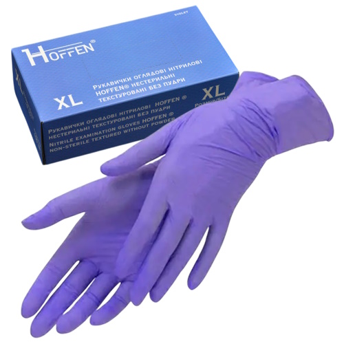 рукавиці медичні нітрилові Hoffen violet, 3,6гр. XL (50/500)
