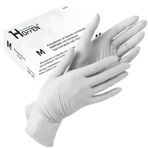 рукавиці медичні нітрилові Hoffen white, 3,5гр. M (50/500)