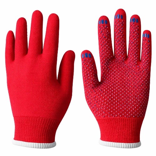 рукавиці синтетичні червоні з синьою ПВХ-крапкою, розмір 8 (10)
